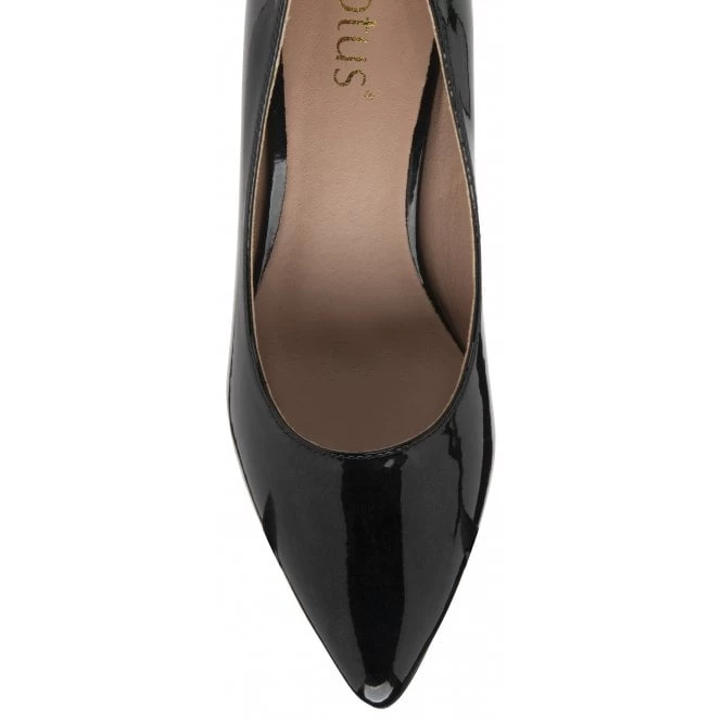 A must-have for this season and beyond is the Lotus Roma court shoe. This true wardrobe hero is crafted with a pearlised patent upper, a cushioned insole and an 9cm stiletto heel to make this women’s black court shoe not only wearable for special occasions, but it’s also perfect for adding a touch of opulence to everyday looks. The Roma court shoe coordinates flawlessly with the Lotus Raine clutch bag.