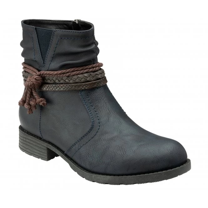 Giving the Lotus Dana women’s ankle boot an eye-catching point of difference is distinctive plait and rope detailing that wraps around the boot at the ankle. Finished in faux leather, this classic dark blue boot sits on a 3cm heel to make it a highly wearable boot choice from the Lotus collection.