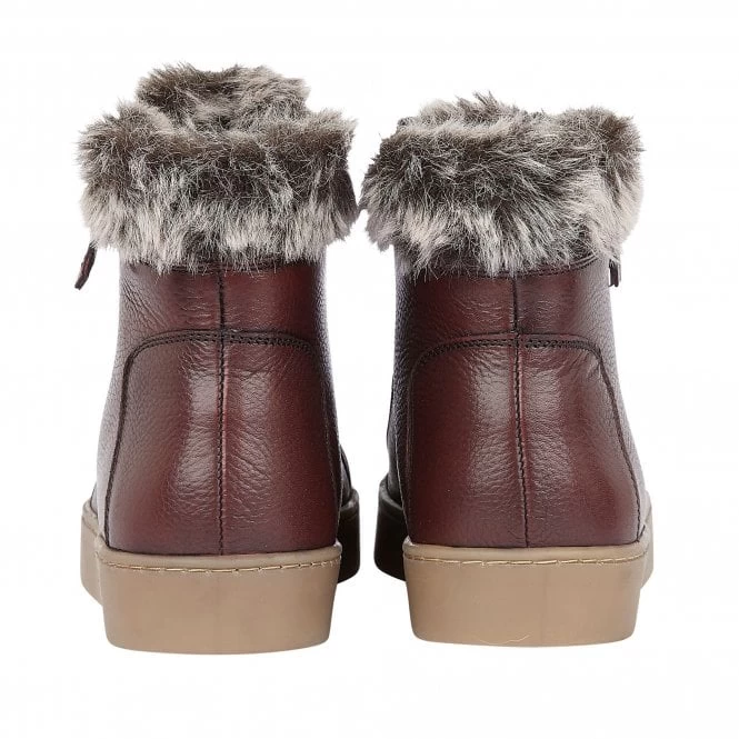 Make light work of autumnal dressing and step out in a pair of Siobhan high top trainers from Lotus by Stressless. Crafted from premium leather, this lightweight and casual women’s lace-up burgundy trainer is accompanied by a functional outside zip and a sumptuous faux fur trim. As well as having a distinctive finish, this Lotus women’s casual trainer also boasts comfort features including shock absorbing properties and a padded insock.