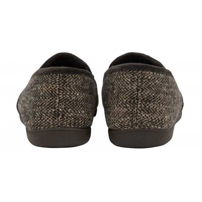A traditional offering from Lotus that won’t disappoint is the men’s full shoe slipper Stanley. Nestled on a rubber outsole for enhanced durability, this men’s classic brown slipper also boasts a tweed effect upper, plus it features elasticated side panels to aid with putting them on/off with ease and memory foam in-socks that deliver uncompromising comfort.