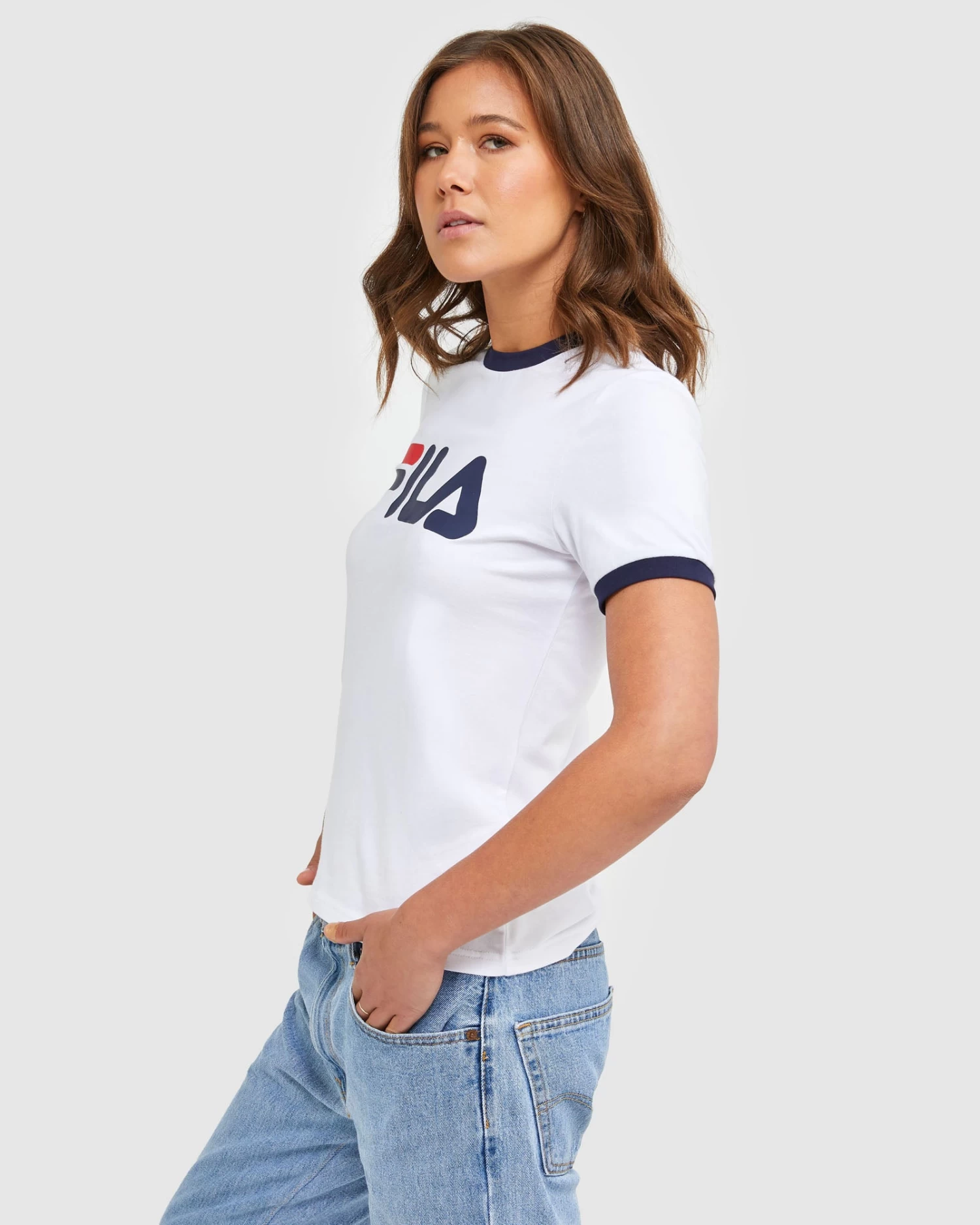 The FILA Classic Women’s Ringer Tee is made from stretch cotton for extra comfort and with the Iconic FILA bold logo across the front. This tee will become a staple in your off-duty repertoire. Team it will denim cut offs and FILA Slides.