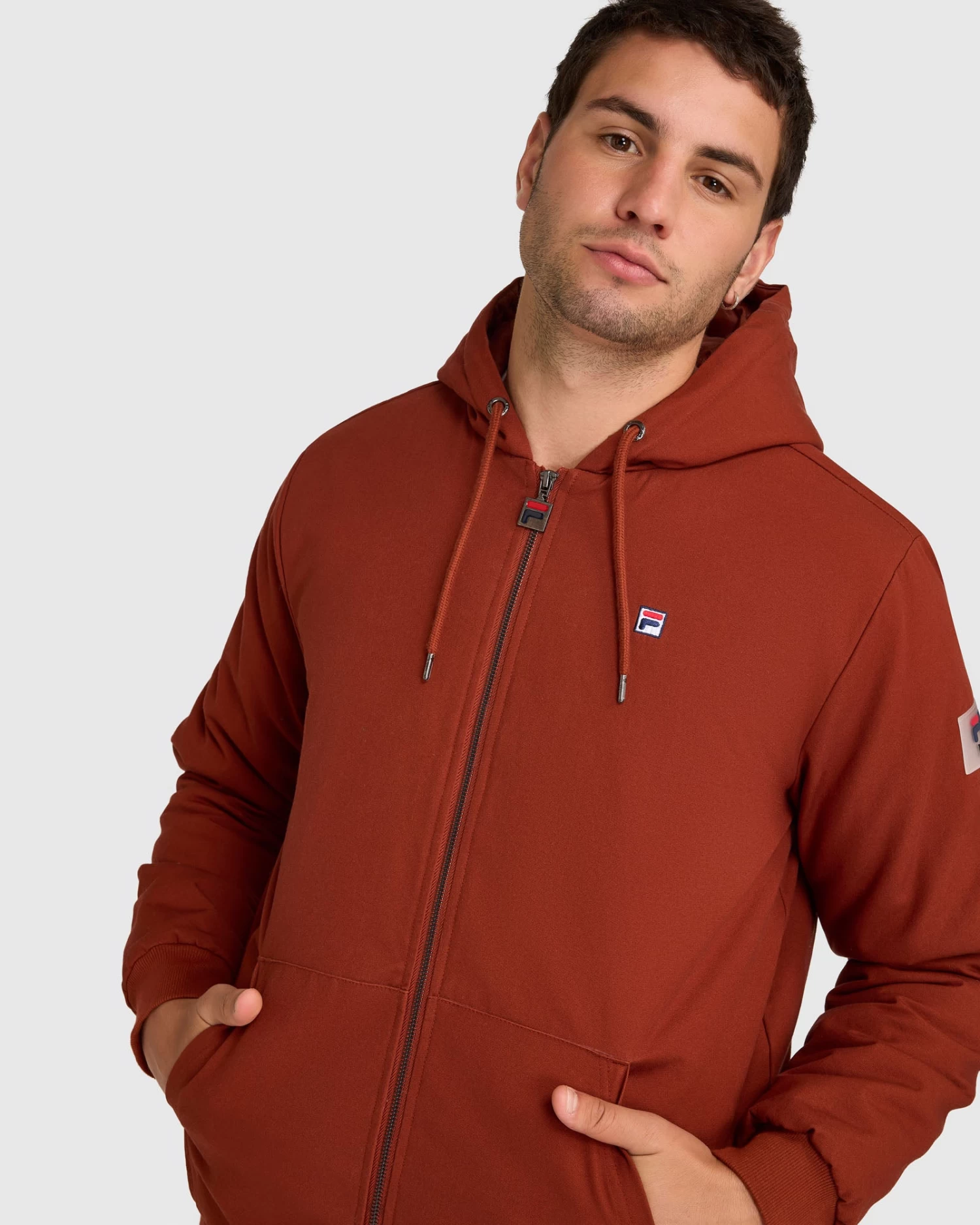 has a full-length zipper closure, ribbed cuffs, and hemline, and two