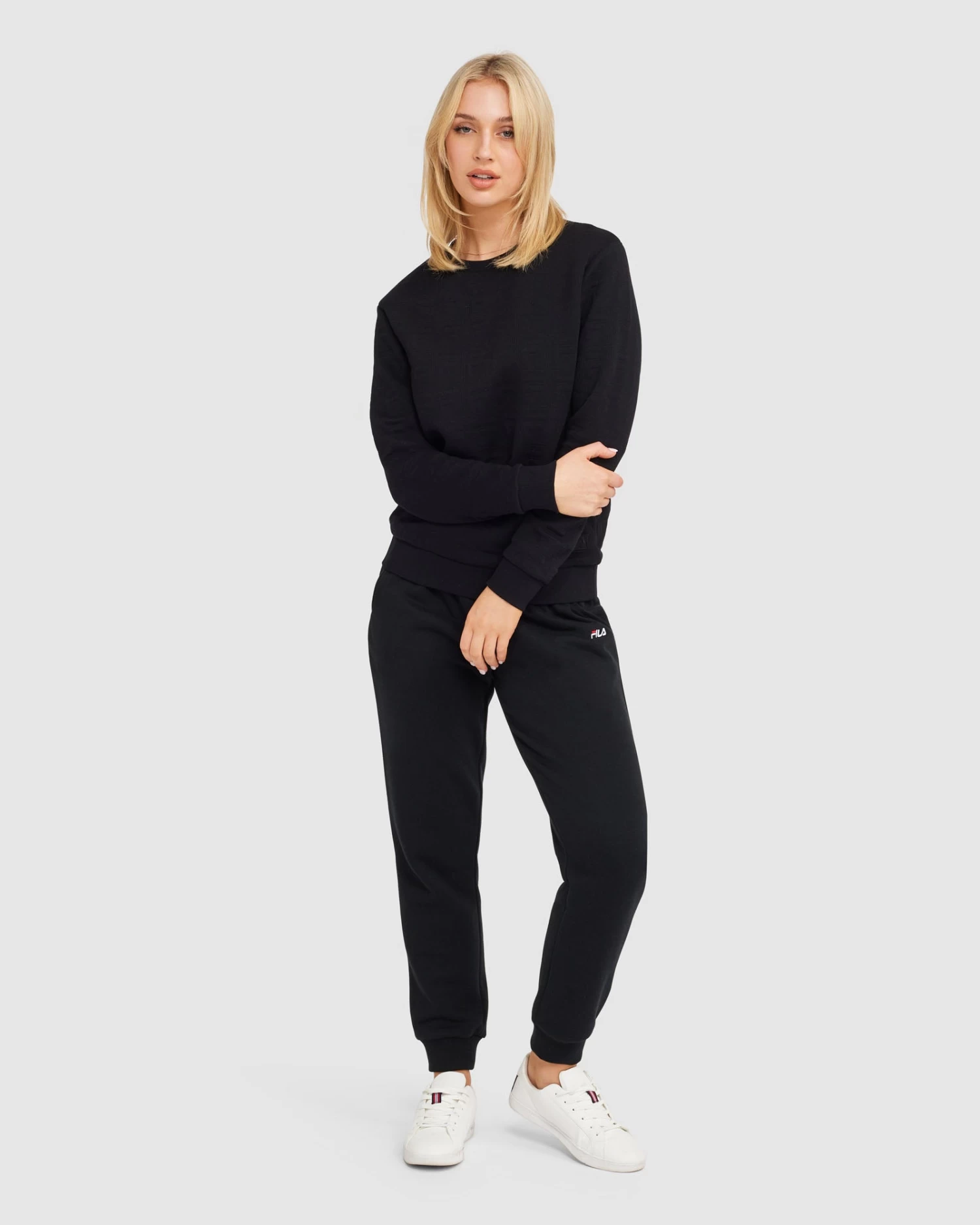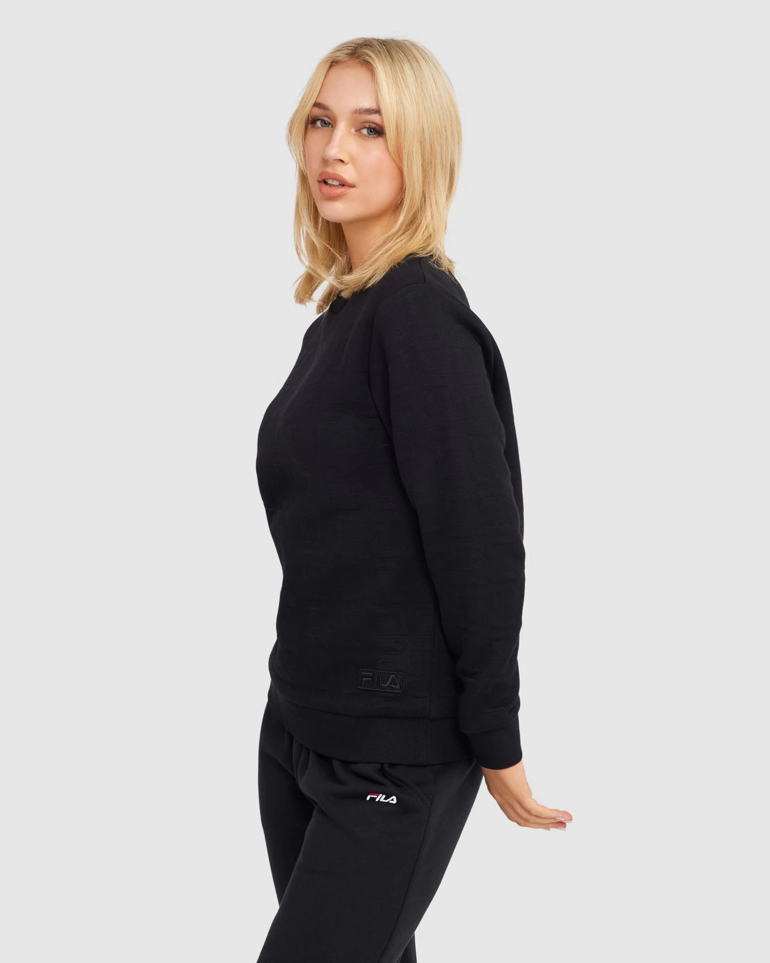 - FILA embroidered patch logo to left hem