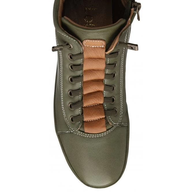 The Lotus Frida is the perfect trainer boot hybrid that off duty looks call for! This casual, almost flat, ladies’ ankle boot emulates the aesthetic of a trainer due to the elasticated laces incorporated. As well as featuring a pull tab, this premium leather khaki and tan leather boot encompasses an inside zip to help with getting the style on/off effortlessly.