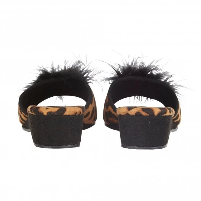 The ever popular Lotus Allure slipper gets an update to further accentuate its glamorous flair and appeal. As per its predecessors a striking feather pom-pom is incorporated, but this season’s new style sees the addition of sparkling diamantes adorning the microfibre upper. This open toe, leopard printed, women’s Lotus slipper also boasts a subtle wedge heel and an extra padded cushioned in-sock to make it exceptionally comfortable.