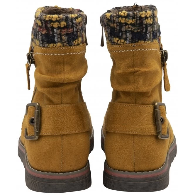 The perfect accompaniment to casual looks is the Lotus Sandy boot. Finishing just above the ankle, this women’s mustard boot boasts a distinctive multicoloured knitted collar, an exposed zip, decorative buckle detailing on the heel counter and an on-trend cleated sole unit. Featuring an imi-suede upper, this almost flat women’s boot is a highly desirable offering that will be appreciated by many.