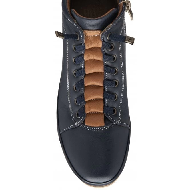 Navy & Tan Leather Frida Ankle Boots | Lotus
