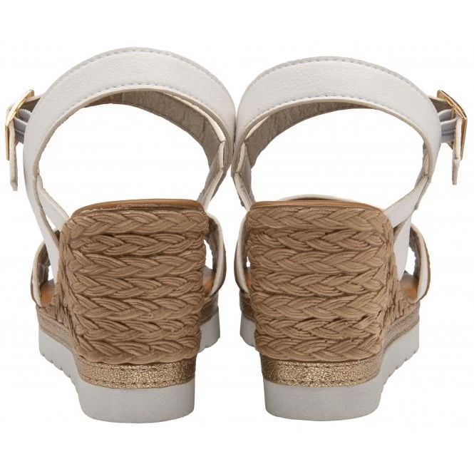 The perfect pairing to warm weather looks is the highly versatile Lotus Carina wedge sandal. This women’s open toe white sandal encompasses polished metal hardware on the upper, an adjustable ankle strap to help secure the foot and it’s finished with an on-trend 8cm raffia covered wedge heel to make it a highly wearable summer essential!